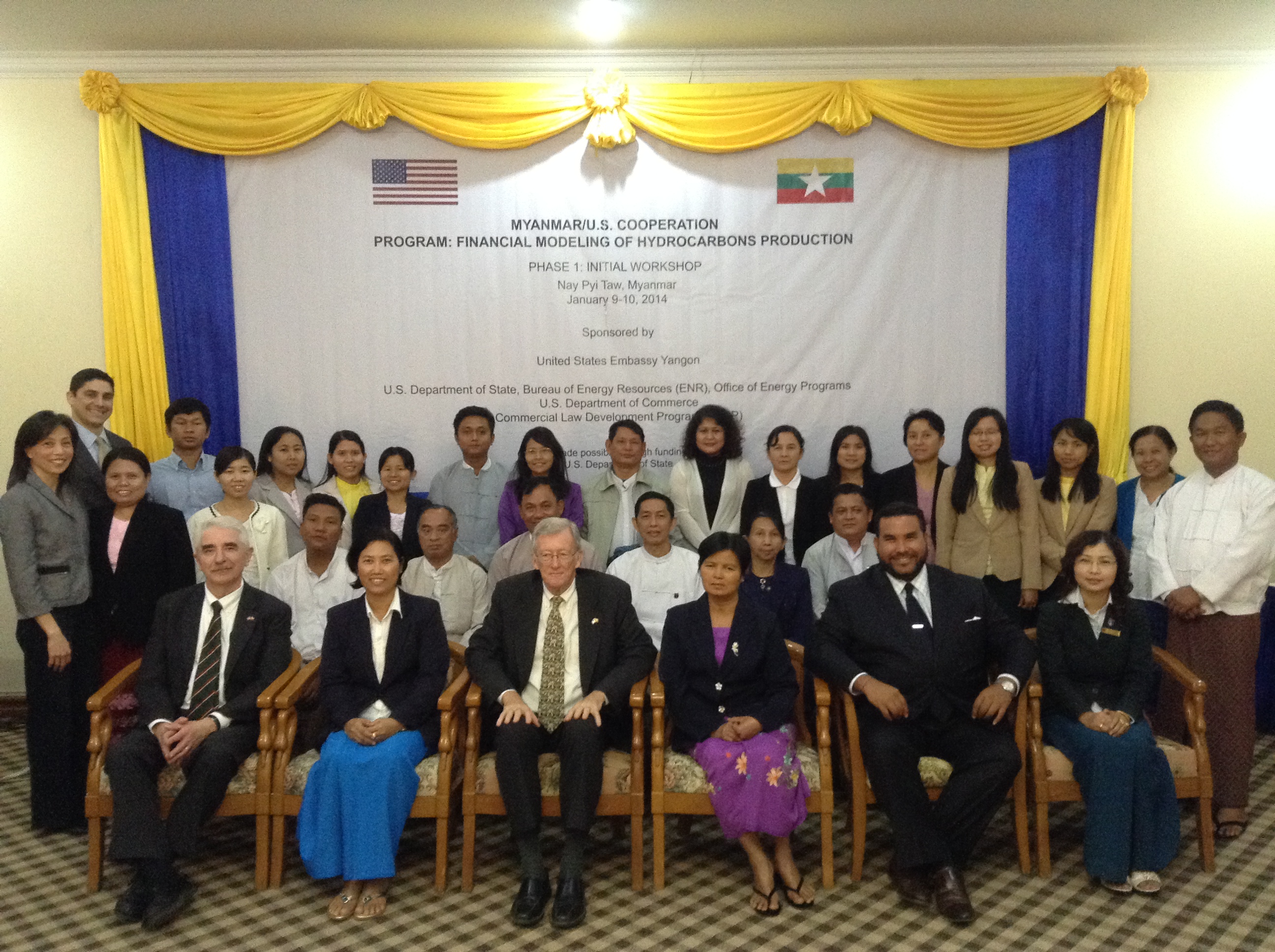 On January 9-10, 2014, CLDP conducted a financial modeling workshop for Burma’s Ministry of Energy (MOE) and national oil company, Myanmar Oil and Gas Enterprise (MOGE) in Naypyitaw. CLDP, with expert-advisor Donald Bellman from the University of Texas, presented a Burmese-specific financial model that MOE and MOGE may use to forecast potential revenues in order to evaluate bid tenders for offshore energy development in Burma. This financial modeling workshop presents a new tool to the ministries, which will help level the playing field and place MOE and MOGE in better positions to negotiate and manage transparent and sustainable oil and gas contracts that benefit all stakeholders.