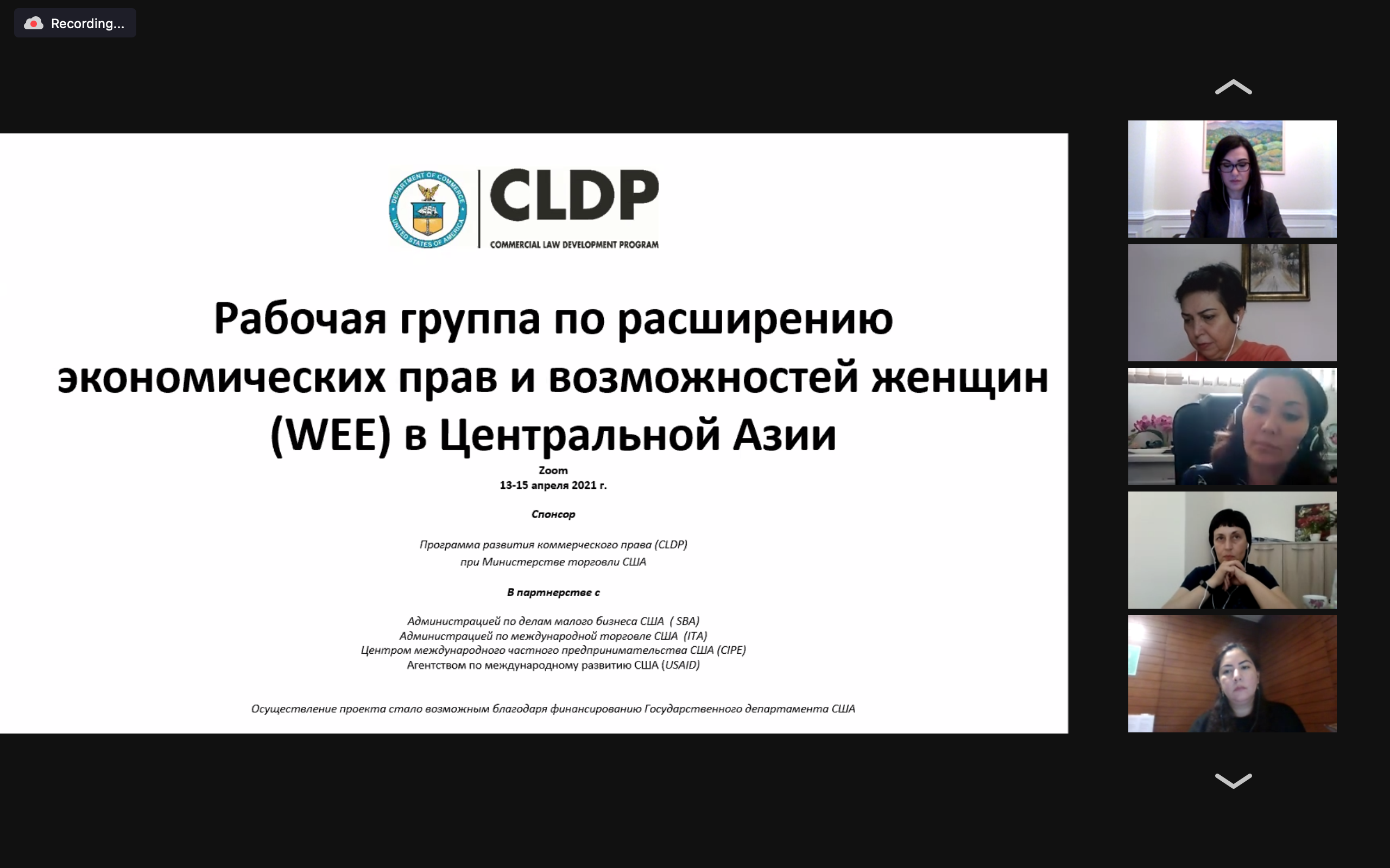 On April 13-15, CLDP organized the second meeting of Central Asia Regional Women’s Economic Empowerment (WEE) Working Group. The three-day virtual meeting gathered private sector women entrepreneurs from the five Central Asian countries and Afghanistan, as well as experts from U.S. government agencies, international NGOs, and local companies. The meeting addressed: (1) Covid-19’s impact on women-owned small businesses globally and in the region; (2) the benefits of digital commerce platforms during the Covid-19 crisis; and (3) further development of Central Asia Regional Women’s Business Agenda. The interactive meeting included recommendations to address legislative gaps and industry policy that impact women-owned businesses, as it relates to the digital trade framework and to challenges for effective business operation in the region.