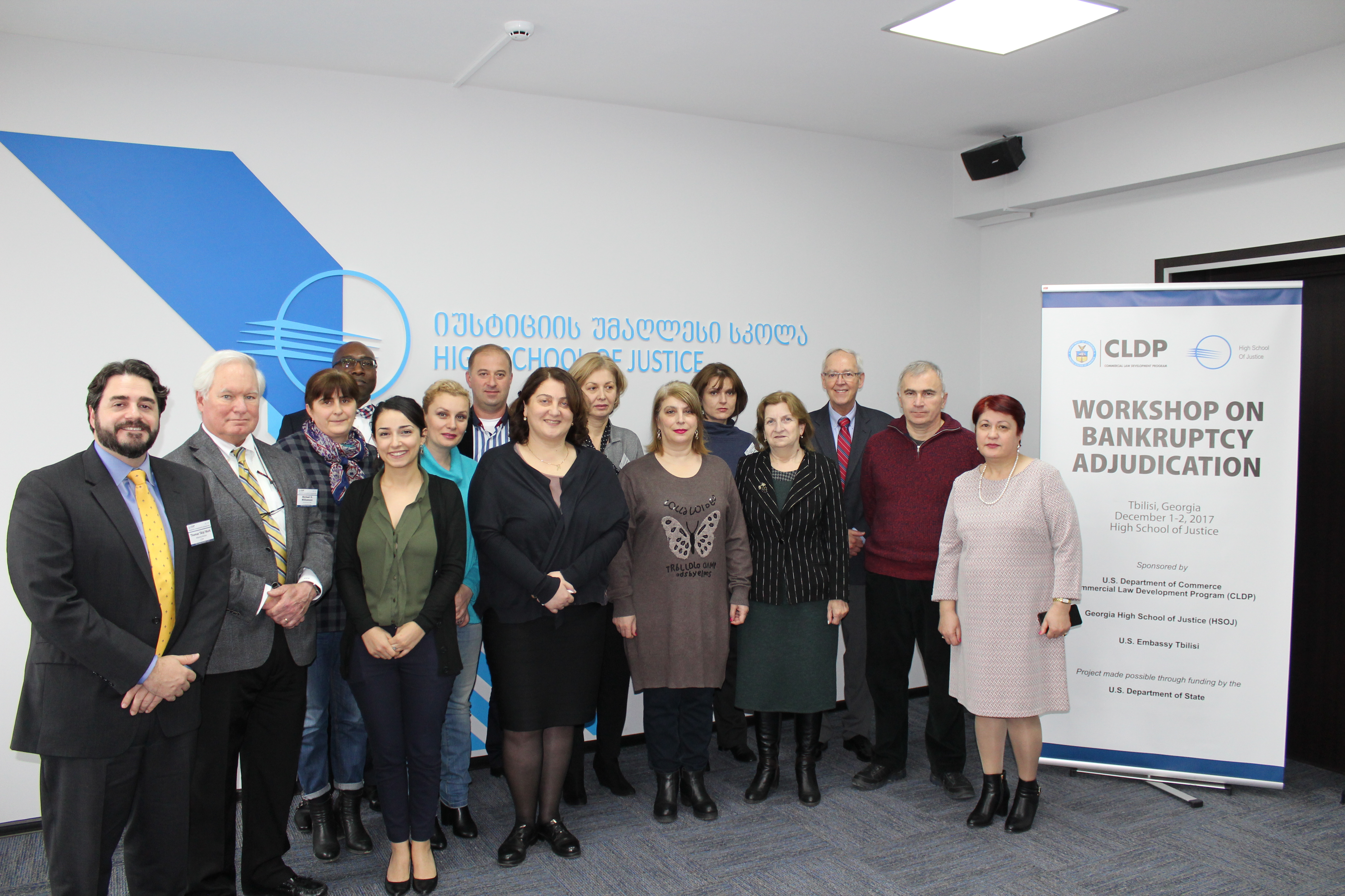 On December 1-2, 2017, CLDP, in partnership with The High School of Justice (HSOJ) and Embassy Tbilisi, held a two-day workshop on insolvency law in Tbilisi, Georgia. The workshop was led by  U.S. Chief Bankruptcy Judge, Michael Williamson, Middle District of Florida, and Dave Curry, a retired partner from the law firm Mayer Brown, LLP and expert in corporate restructuring and rehabilitation.