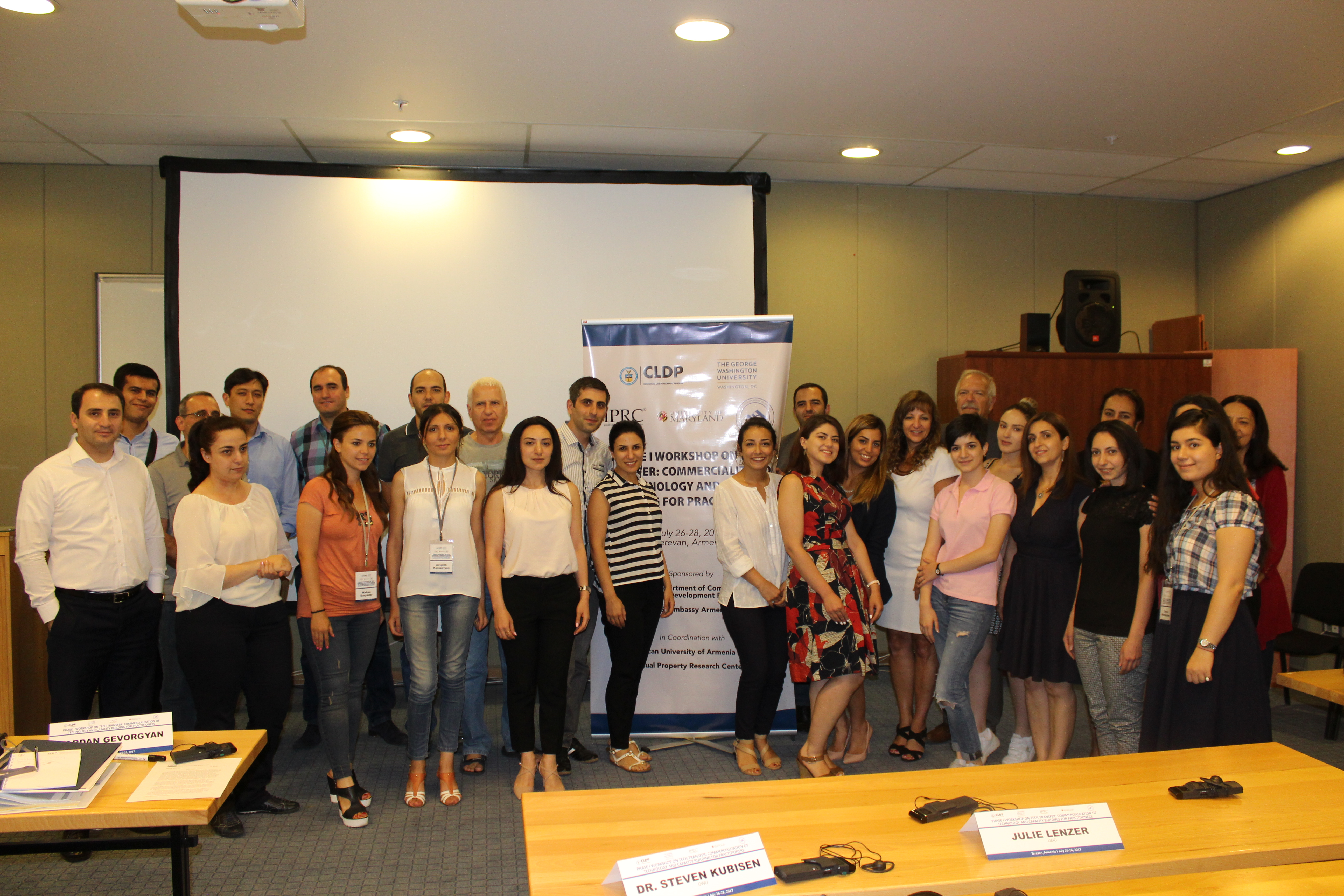 On July 26-28, CLDP led a workshop on technology transfer for advisors and practitioners in Yerevan, Armenia. Representatives from American University of Armenia (AUA), Yerevan State University, National Polytechnic University, National Science Academy, and private sector law firms attended the program held at AUA. The workshop aimed to build the institutions’ capacity to commercialize the results of their research, particularly through three domains: intellectual property protection strategy, valuation of new technologies, and negotiation of technology licenses. U.S. experts leading the workshop included Julie Lenzer, Associate Vice President for Economic Development, University of Maryland (UMD), Mojdeh Bahar, Assistant Administrator for Agriculture Research Service’s Office of Technology Transfer, U.S. Department of Agriculture (USDA), and Dr. Steven Kubsien, Director of George Washington University (GWU)’s Office of Technology Transfer.
