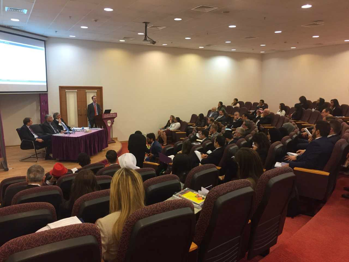 On February 21, CLDP, in coordination with the Royal University for Women, the Bahrain Chamber for Dispute Resolution, Mena Chambers Bahrain, UNCITRAL, and ICC, hosted the 4th Annual Middle East Arbitrator Roundtable at the Royal University for Women in Manama, Bahrain.  The Roundtable was led by Dr. Stefan Kroll of the Vis Moot Organization, Professor Ron Brand of the University of Pittsburgh’s Center of International Legal Studies, and Ryan Harrington of UNCITRAL. More than 70 arbitrators from around the world participated and in sessions focused on addressing current developments in international trade and investment arbitration.  The program was conducted on the margins of CLDP’s 8th Annual Middle East Vis Pre-Moot program and provided an unique opportunity for current transactional lawyers to connect with the next generation of future arbitrators.  Participants discussed current changes in arbitration law and practice and prepared themselves to serve as judges in simulated arbitration rounds.  The Roundtable has become an annual event that has developed a community of legal practitioners in championing the practice of effective contract enforcement and dispute resolution.