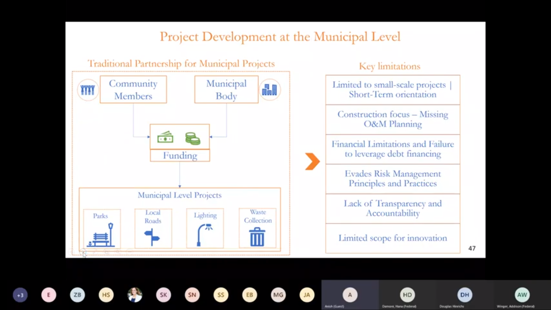 On September 17, CLDP, in collaboration with the Nepal Renewable Energy Program (NREP), conducted a webinar on public-private partnerships (PPPs) for provincial Nepali government officials. Recent Nepali legislation has allowed local and regional authorities to procure infrastructure projects under a PPP model. Nepal is working to increase domestic and foreign investment at the sub-national level for infrastructure, with a focus on the energy sector. The webinar highlighted basic concepts of PPPs, PPPs across Nepali federal, provincial, and local governments, and the enabling policy environment for PPPs in Nepal. CLDP’s collaboration with NREP is part of its ongoing technical assistance under the Infrastructure Transaction and Assistance Network (ITAN). CLDP has been working with the Nepali government at the national level since 2018 on developing and implementing bankable infrastructure projects.